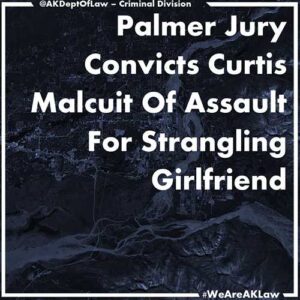 (Palmer, AK) – Wednesday, at the conclusion of a two-week jury trial, a Palmer jury convicted Curtis L. Malcuit, 53, of multiple counts of Second-Degree Assault, one count of Third-Degree Assault, and multiple counts of Fourth-Degree Assault. Malcuit was acquitted of other counts of assault and sexual assault.
