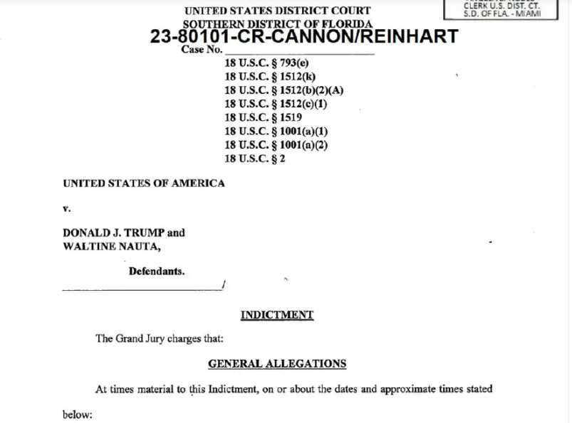 According to the document, Trump is being charged with 37 counts related to the government documents he was not authorized to retain or share with others after leaving office.