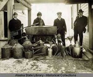 Alaskans passed the “BoneDry” law in 1916, and it took effect on January 1st, 1918, a full two years before the U.S. prohibition. It banned the manufacture, sale, gift, or transportation of intoxicating liquor throughout the territory.